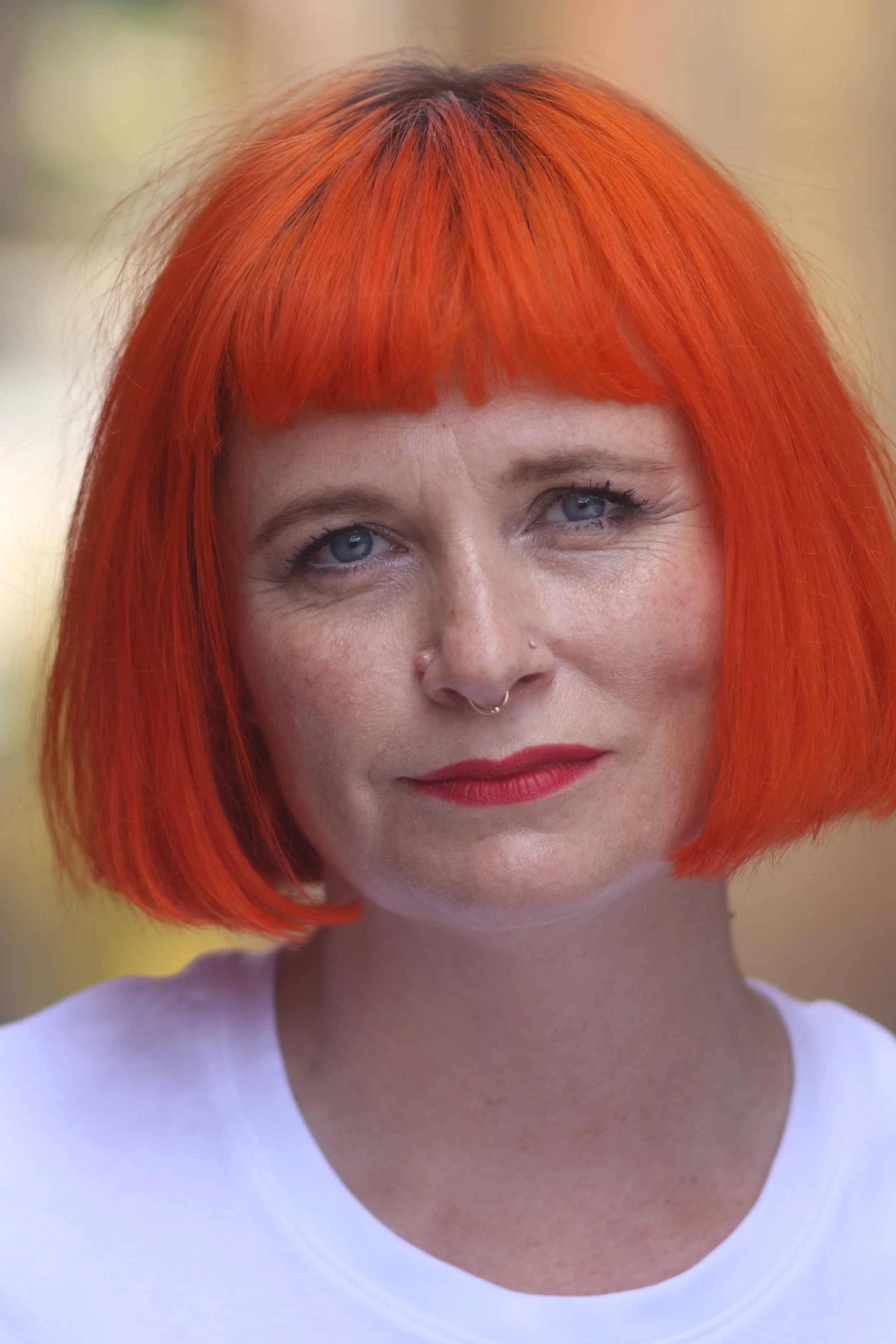 My look balances strength and subtlety — distinctive red hair, defined features and a direct, steady gaze.